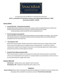 SnackBAR will be serving savory and sweet bites in front of Gainey Hall during the Art Farm at Serenbe Film Showcase featuring AILEY, a celebration of movement, memory, and cultural legacy.